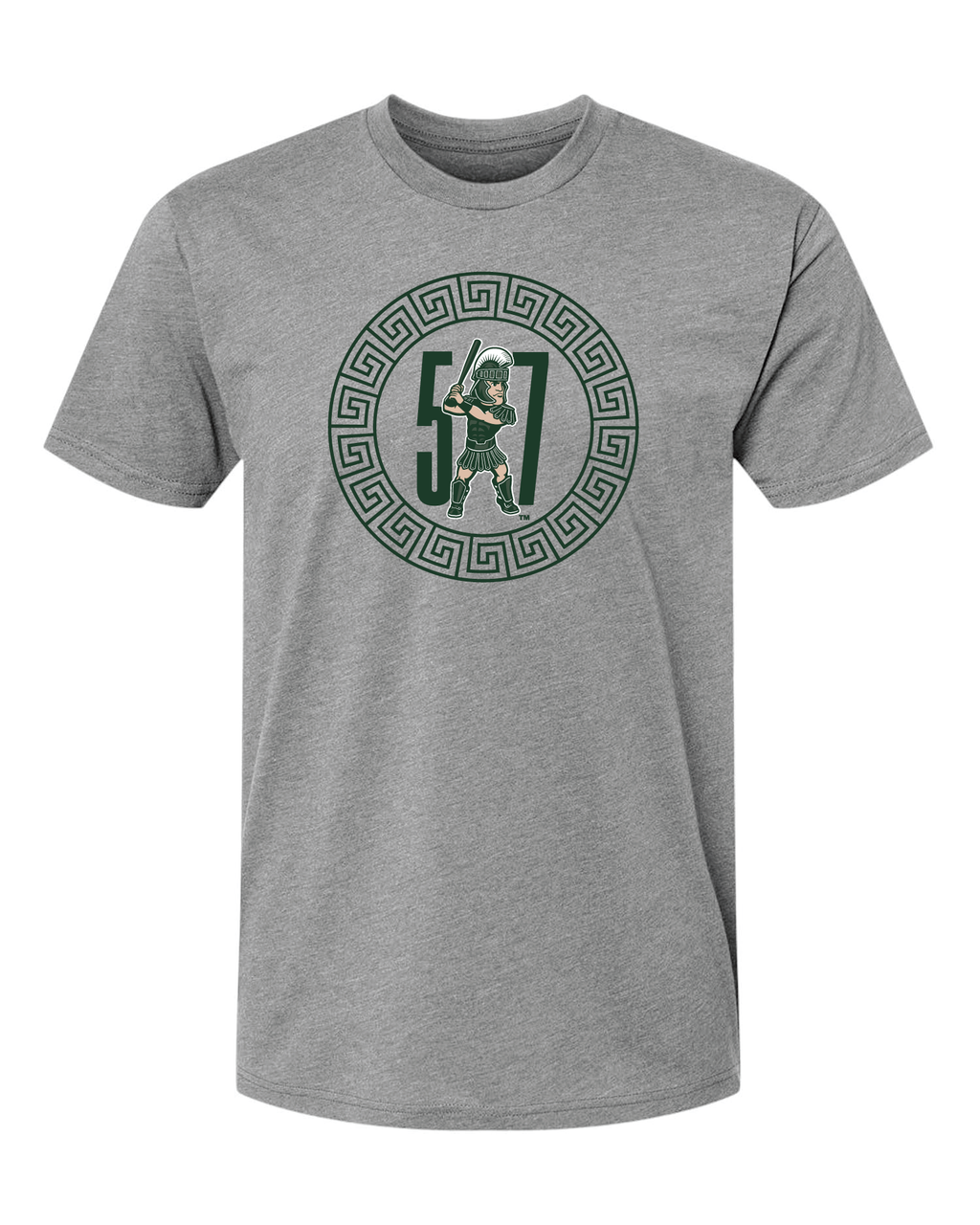 Rep your Michigan roots and your Spartan pride with this Michigan State Baseball 517 Day T-Shirt. Featuring a bold circular design with a Greek-inspired border, the shirt showcases a vintage-style Spartan warrior positioned between the numbers 5 and 1 and 7—a nod to the iconic Mid-Michigan area code.