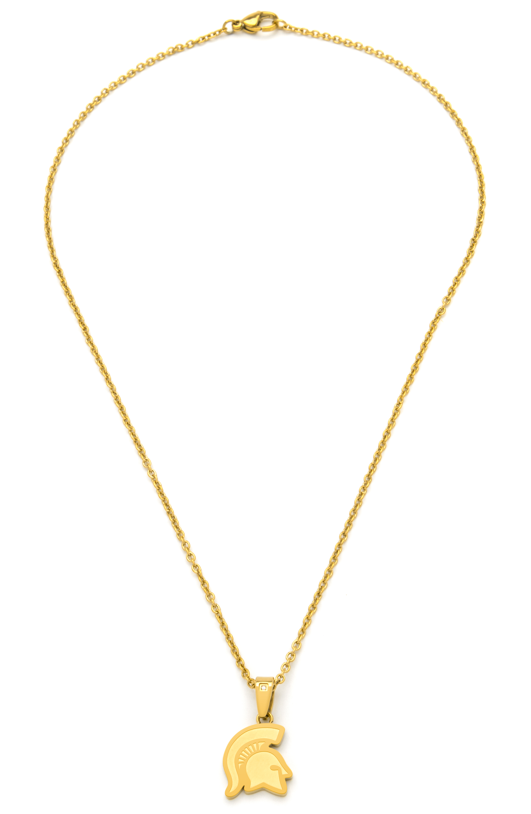 Show off your Spartan pride with the FanDrip Stainless Steel Spartan Helmet Necklace! Weighing 5.4 grams and measuring to 17 inches, this Spartan Helmet pennant made from silver or gold colored stainless steel is a perfect gift for anyone who loves Michigan State University. With the elegant II2-3 diamond embedded in the pennant, get ready to create classy and stylish looks with your new necklace.