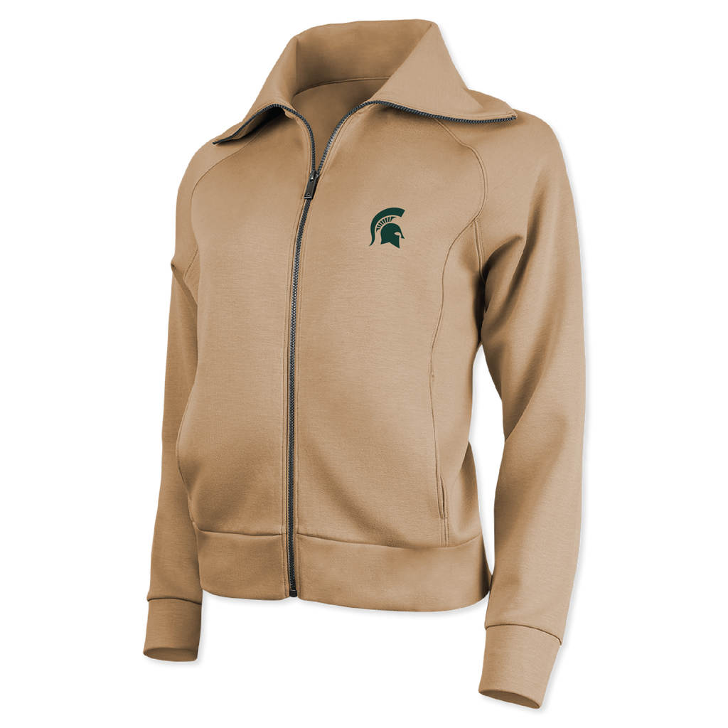 The MSU Women's Full-Zip Collar Jacket from Ahead will soon become your new favorite item in your closet! Made with soft and lightweight materials, this jacket is perfect for everyday comfort and style. Featuring a zipper that allows you to style your jacket to best suit your preferences, a neutral color, and the Spartan helmet logo in green on the left side of the chest, you can layer or wear this jacket on its own while showing off your support for MSU.